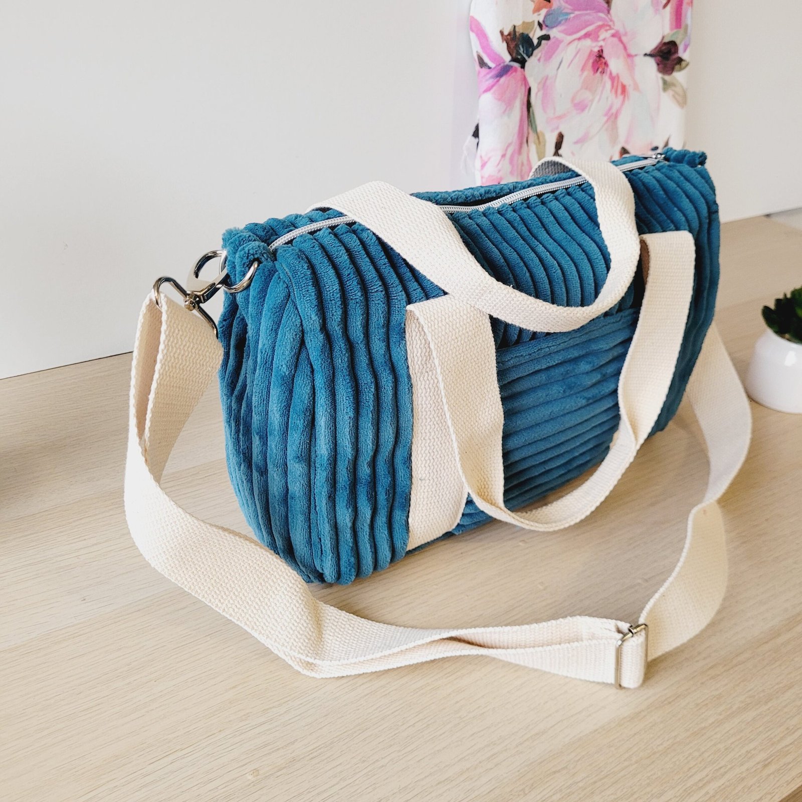 Découvrez le sac bowling en velours, entièrement cousu à la main dans mon atelier. Chic, pratique et pensé pour accompagner toutes vos escapades, il offre un parfait équilibre entre élégance, fonctionnalité et fabrication artisanale française.